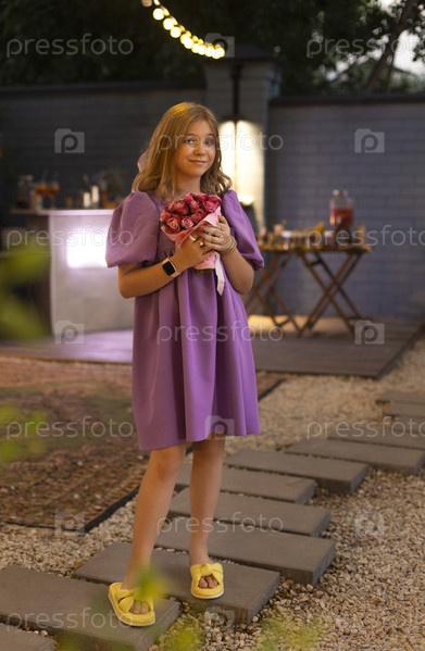 Блондинка с букетом цветов на день рождения или день матери