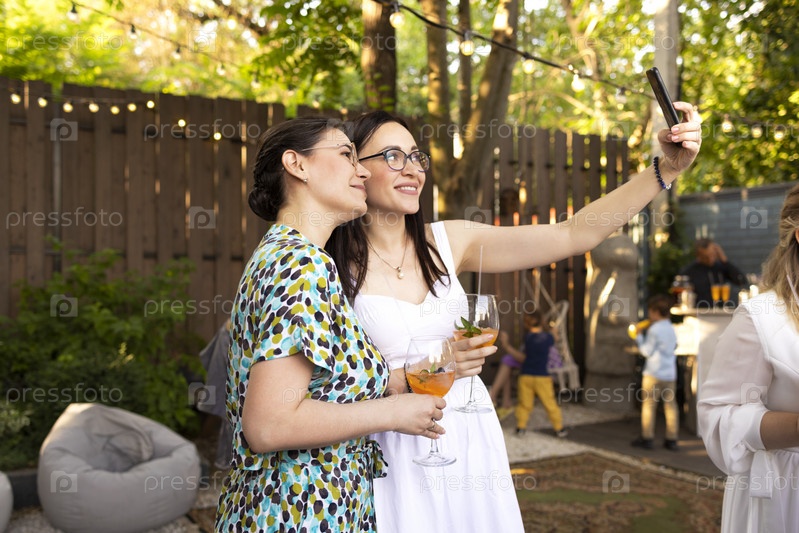 Счастливые подруги проводят время вместе, молодая женщина пьет Aperol spritz