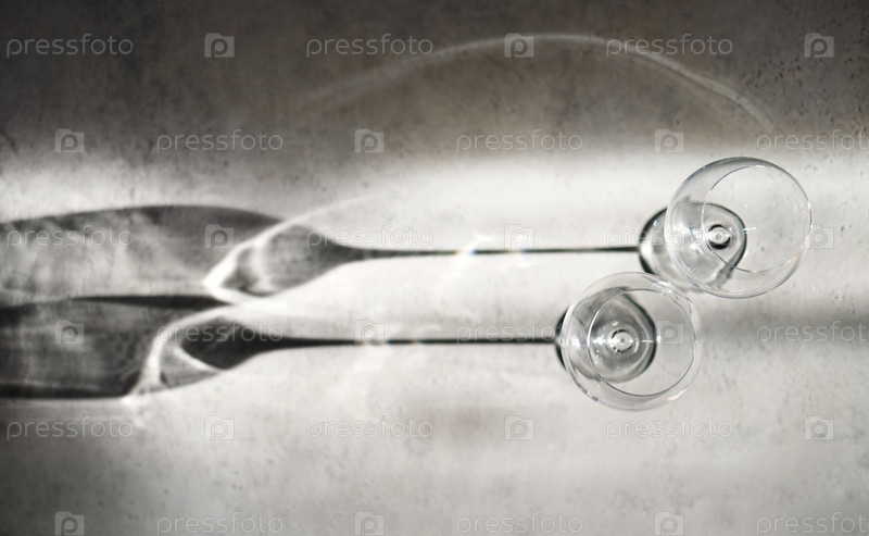 Пустые бокалы с силуэтом на сером фоне с видом сверху темной тени. Концепция винного напитка