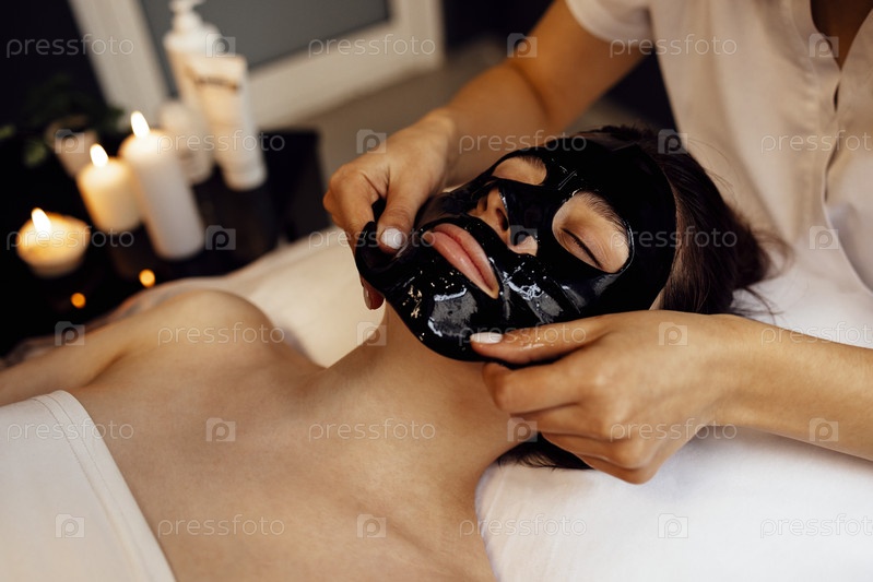 Красивая брюнетка с косметической маской на лице. Уход за кожей с