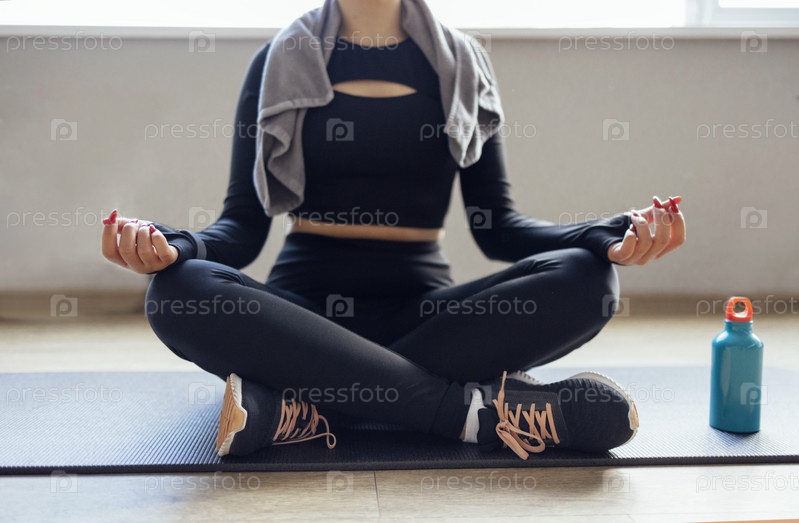 Поза лотоса с мудрой, тренировка, женщина в спортивной одежде