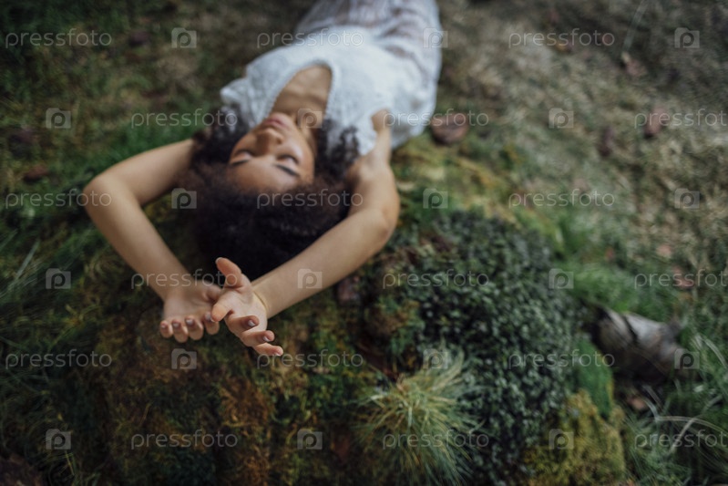 Мода и красота снимают очаровательную девушку смешанной расы в длинном платье