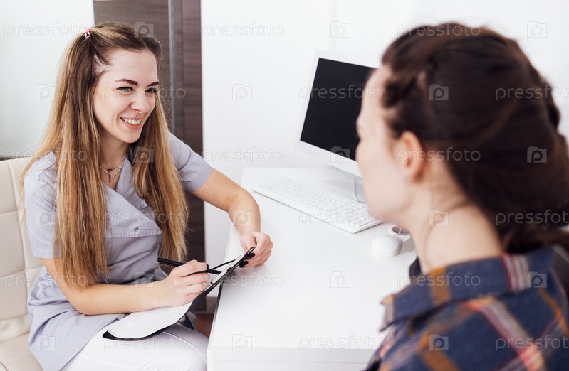 Профессиональный дерматолог осматривает лицо девочки-подростка в ее кабинете
