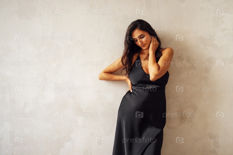 Студийный снимок молодой женщины, ожидающей ребенка
