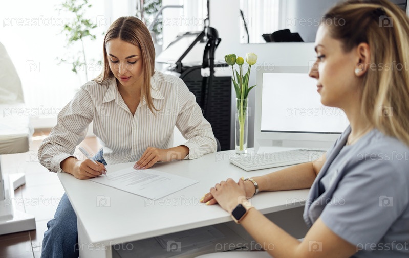 Косметолог или врач записывает информацию о клиенте или пациенте