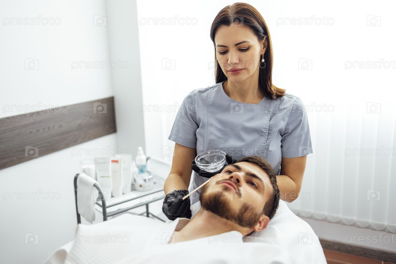 Подготовка кожи молодого человека к лазерной эпиляции щеки