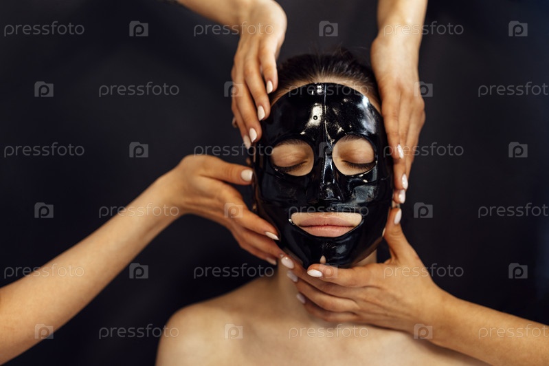 Красивая брюнетка с косметической маской на лице. Уход за кожей с