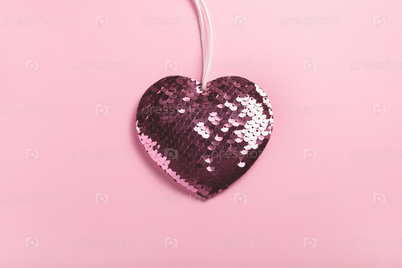 Сердце с блестками на розовом фоне. Любовь, День святого Валентина