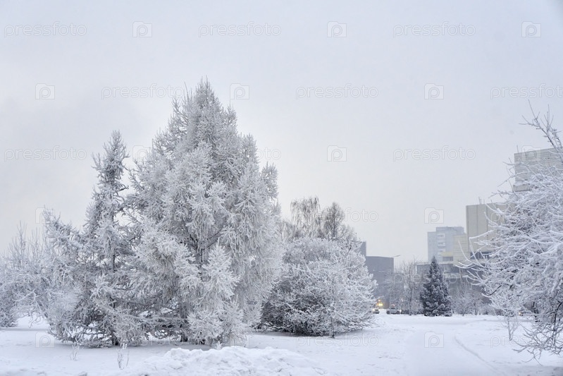 Морозное туманное зимнее утро над Енисеем в центре Красноярска