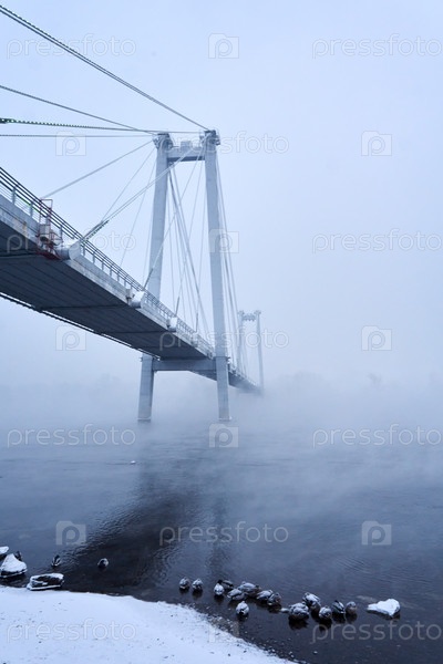 Морозное туманное зимнее утро над Енисеем в центре Красноярска