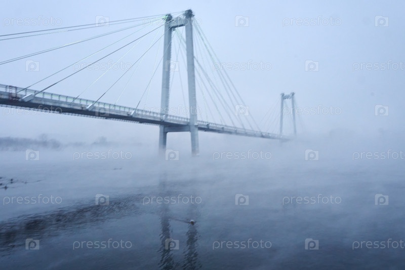 Морозное туманное зимнее утро над Енисеем в центре Красноярска