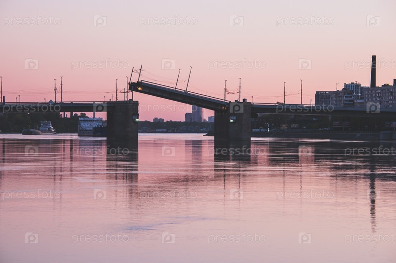 Розовый закат над Невой в Санкт-Петербурге, Россия 2022
