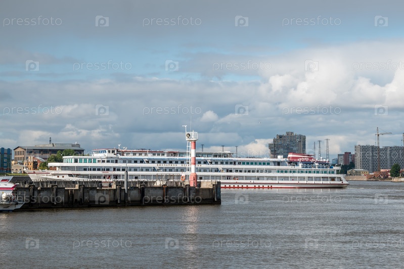 Россия, Санкт-Петербург, 4 августа 2022 г.: Прогулочный катер у причала на Неве