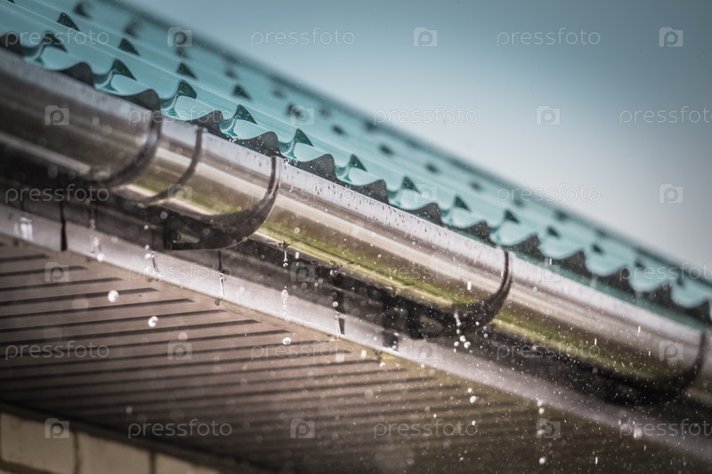 Дождь стекает с крыши вниз