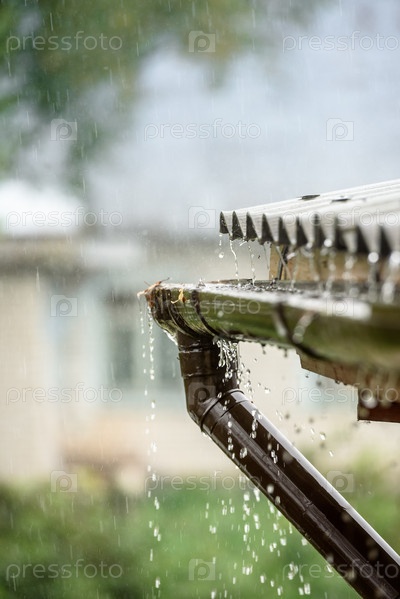 Дождь стекает с крыши вниз