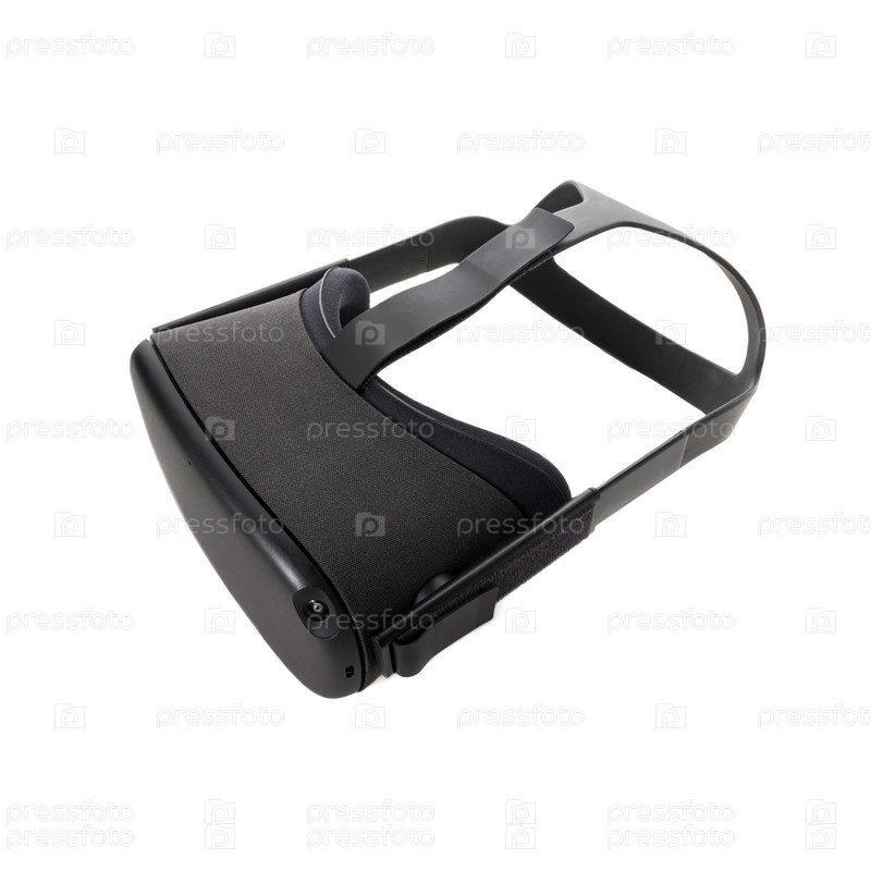 Современные очки VR, изолированные на белом фоне Шлем виртуальной реальности для игр, развлечений и обучения Вид сверху со стороны
