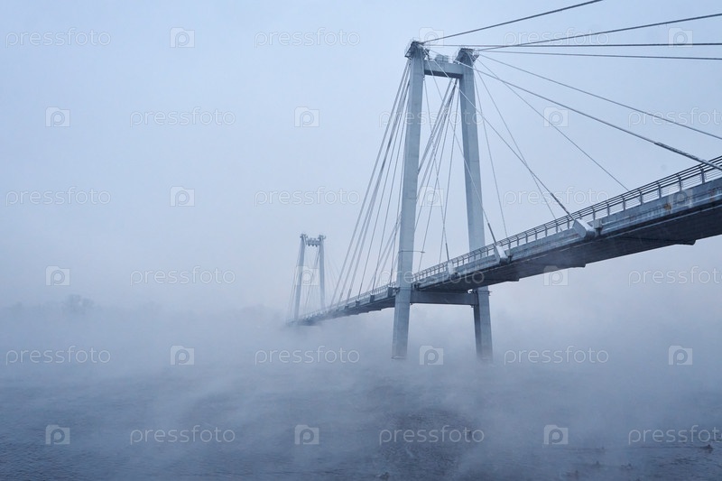 Морозное туманное зимнее утро над Енисеем в центре Красноярска