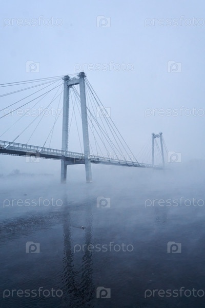 Морозное туманное зимнее утро над Енисеем в центре Красноярска