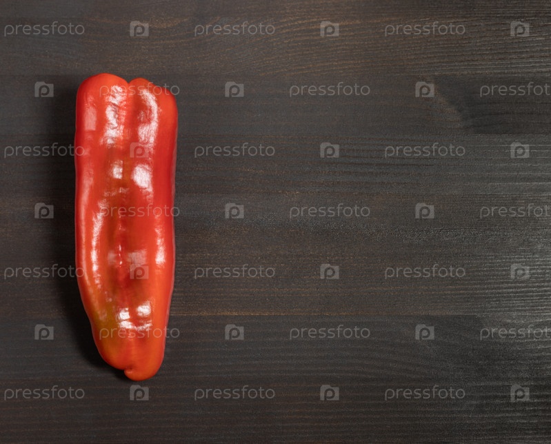 Красный перец на коричневом деревянном фоне. Скопируйте пространство. Некрасивая еда. Органический перец необычной формы. Плоская планировка