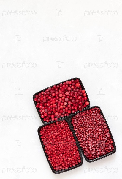 Замороженные ягоды в контейнерах на белом фоне. Ягодный микс. Хранение замороженных продуктов. Скопируйте пространство, вид сверху, плоская планировка