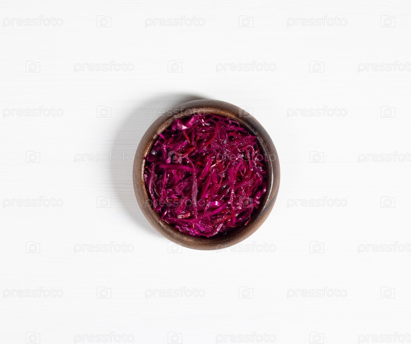 Домашняя квашеная капуста. Ферментированная пища. Квашеная капуста с морковью и свеклой в деревянной миске на белом фоне