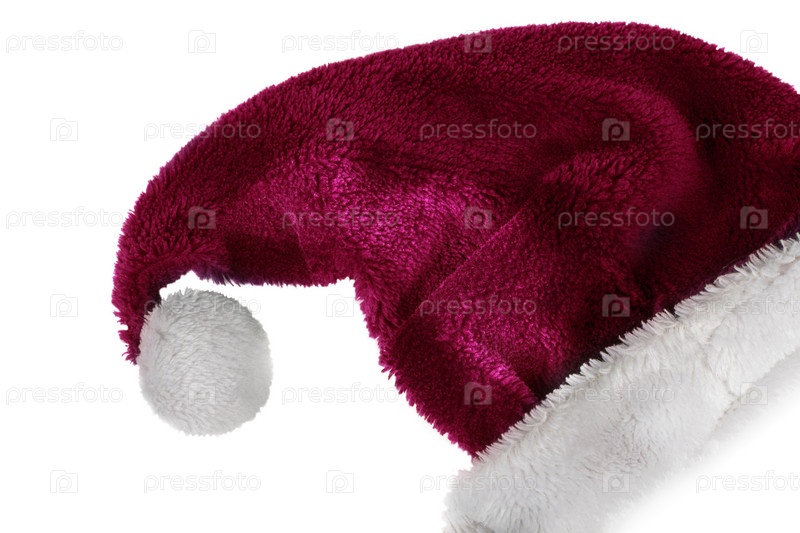 Рождественская шапка на белом фоне. Красная шапка санта-клауса с белым помпоном