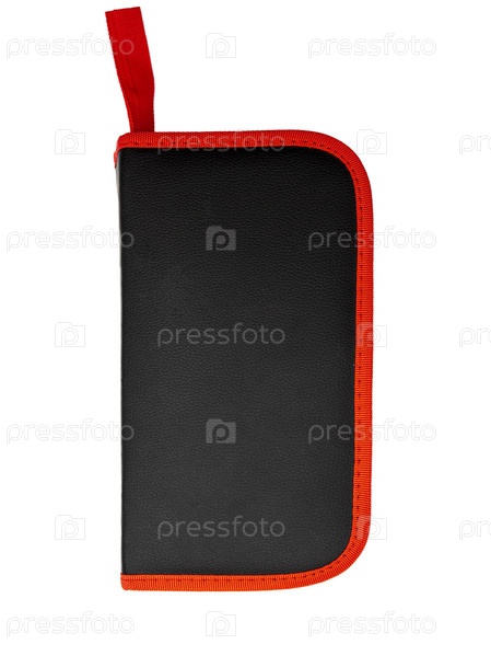 Кожаный черный пенал на белом фоне