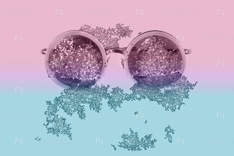 Гламурные солнцезащитные очки с блестками на розово-голубом градиентном фоне