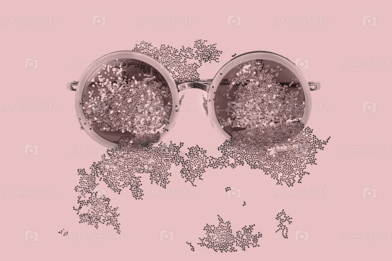 Розовые солнцезащитные очки с блестками на розовом фоне