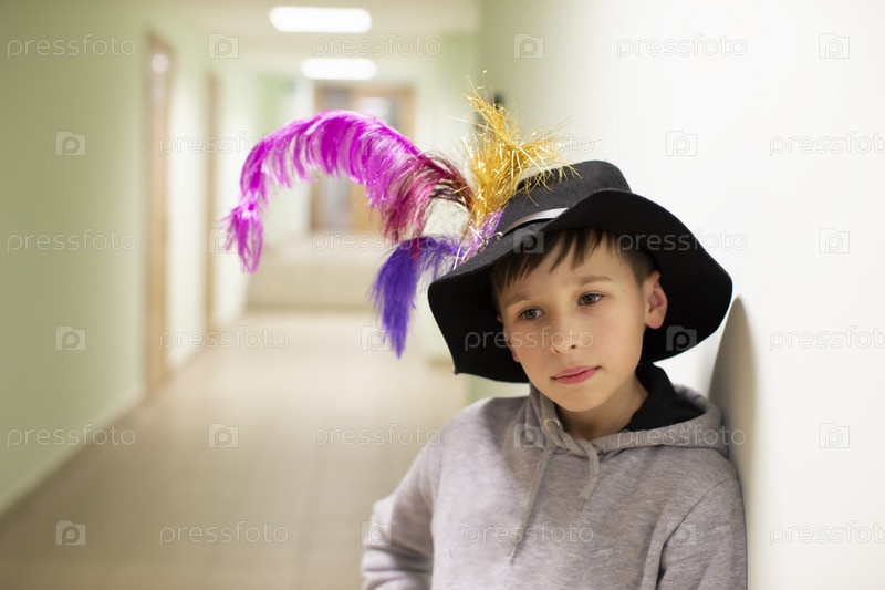 Маленький мальчик в театральной шляпе с перьями. Молодой художник из театральной студии