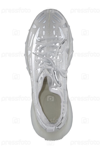 Спортивная обувь. Кроссовки из белой ткани с серыми светоотражающими полосками