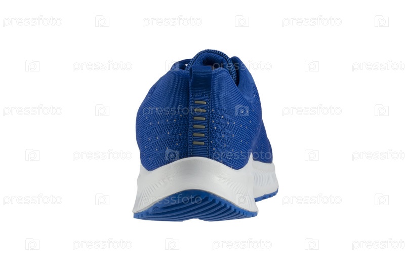 Синие кроссовки из ткани с белой подошвой на белом фоне. Спортивная обувь