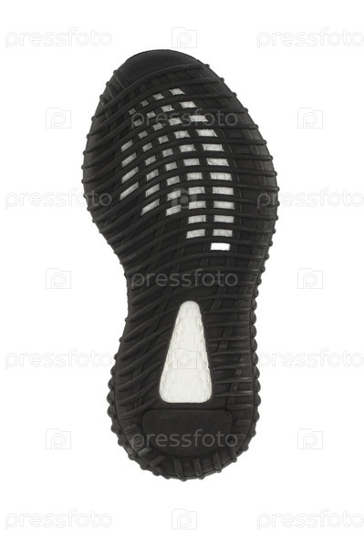 Полиуретановая подошва обуви черного цвета с белыми полосками