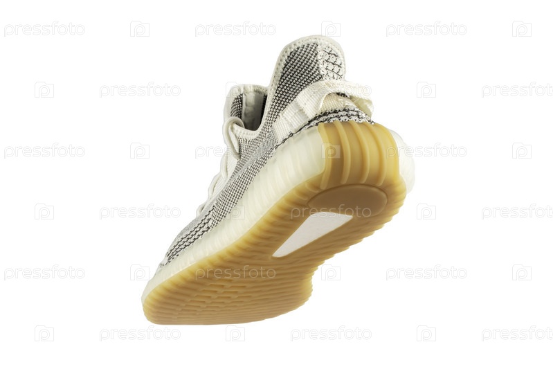 Серые тряпичные кроссовки на белом фоне. Недорогая спортивная обувь