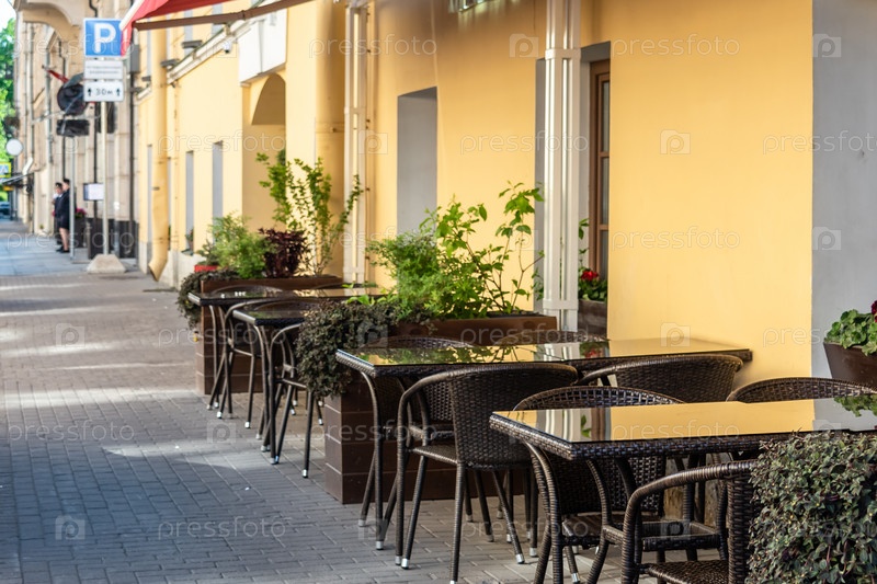 Санкт-Петербург, Россия, 2022: Кафе на летней террасе в городе