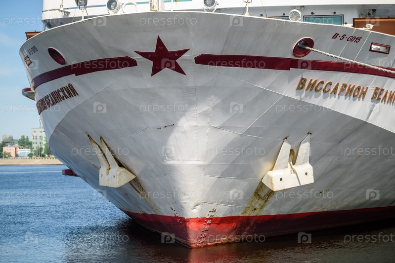 Россия, Санкт-Петербург, 4 августа 2022 г.: Нос большого пассажирского лайнера на Неве