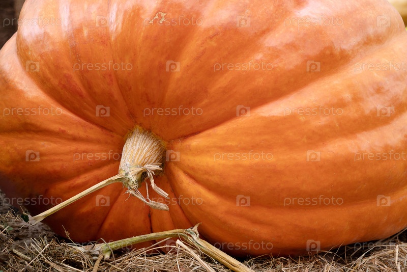 Гигантская оранжевая тыква на осенней фермерской выставке