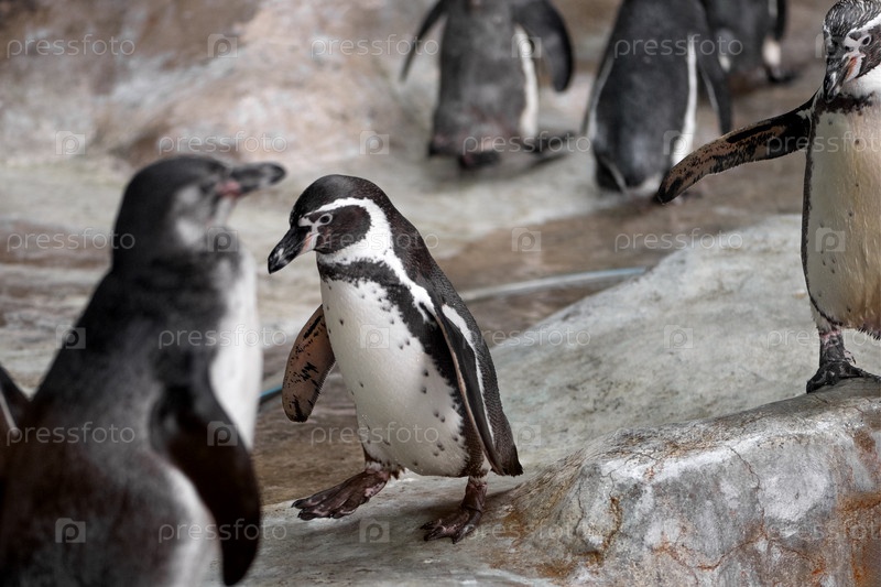 Стая пингвинов в зоопарке