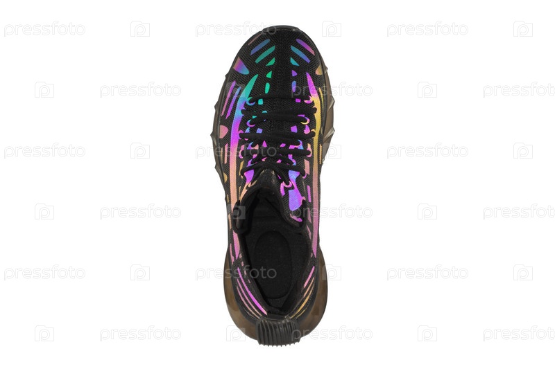 Черные кроссовки с голограммой на белом фоне. Спортивная обувь