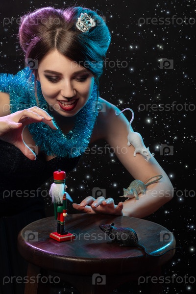 Девочка играет с игрушкой Щелкунчик