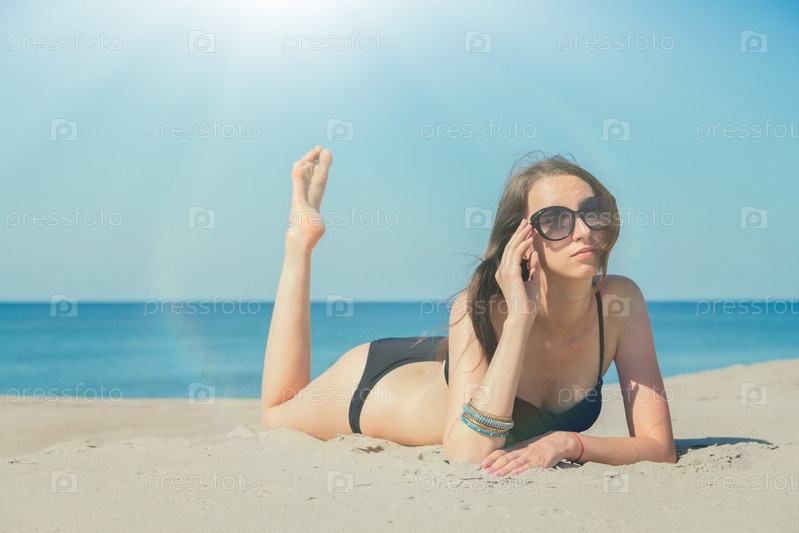 Молодая женщина загорает