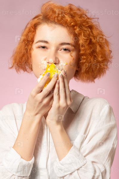 Девушка ест десерт