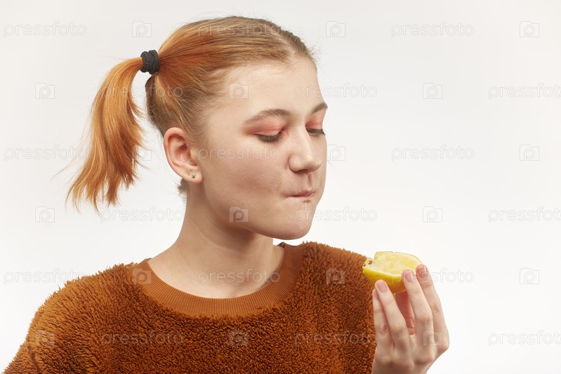 Девушка ест лимон