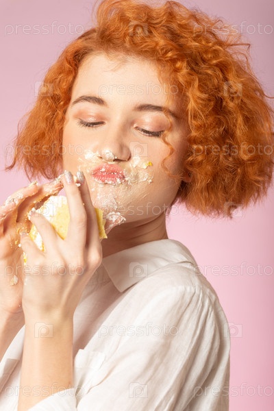 Девушка ест десерт
