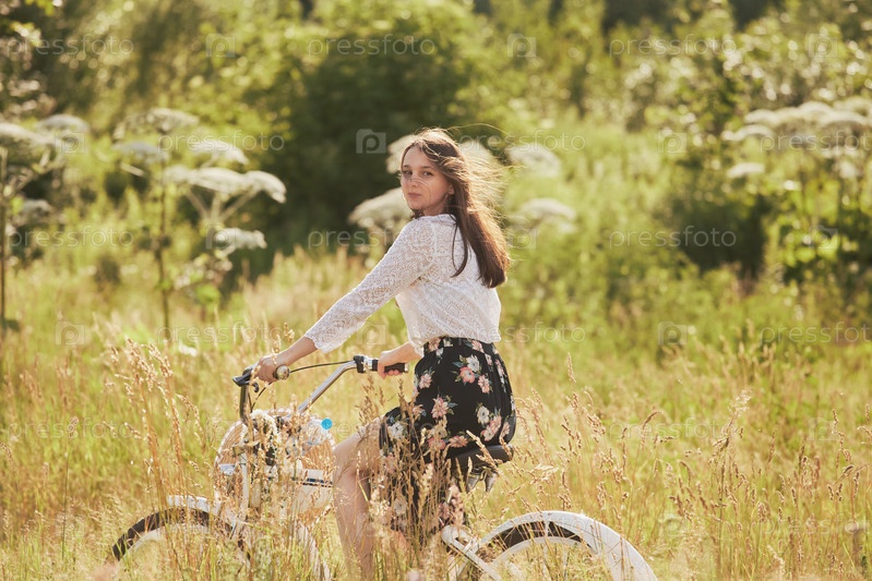 Девушка велосипедистка на велосипеде