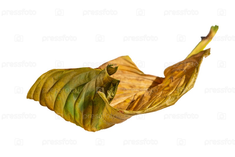 Сухой осенний желтый лист, выделенный на белом фоне, мягкий фокус