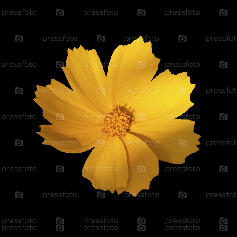 Желтый цветок, сложенный. Изолированный желтый цветок для дизайна. желтый цветок космоса, изолированные на черном фоне