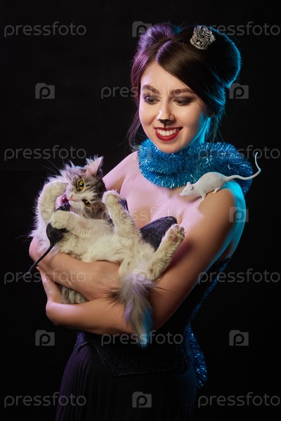 Счастливого рождества девушка с кошкой