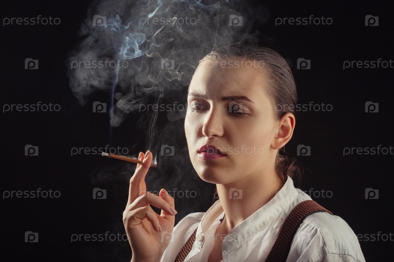 Женщина курит сигарету