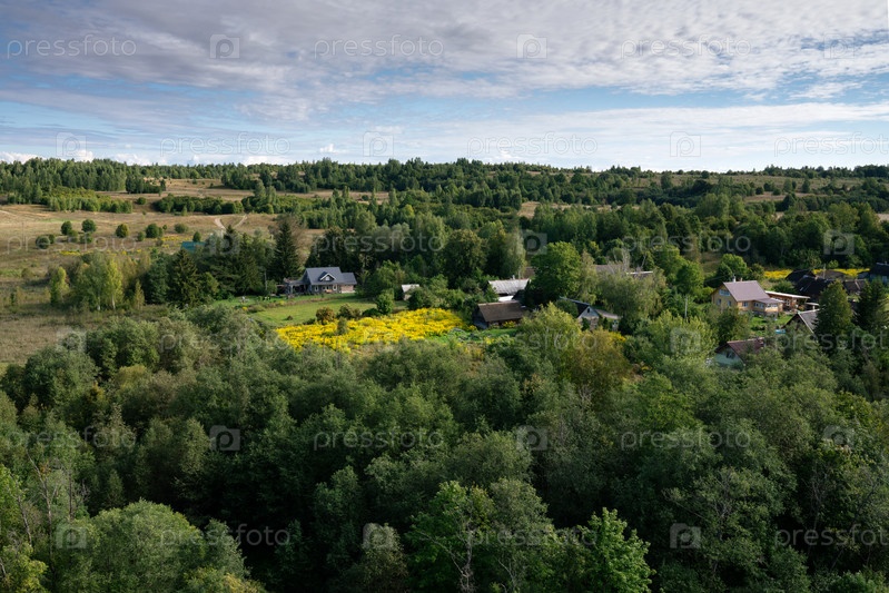 Вид на Изборско-Мальскую долину и поселок Изборск в солнечный летний день, Печерский район, Псковская область, Россия